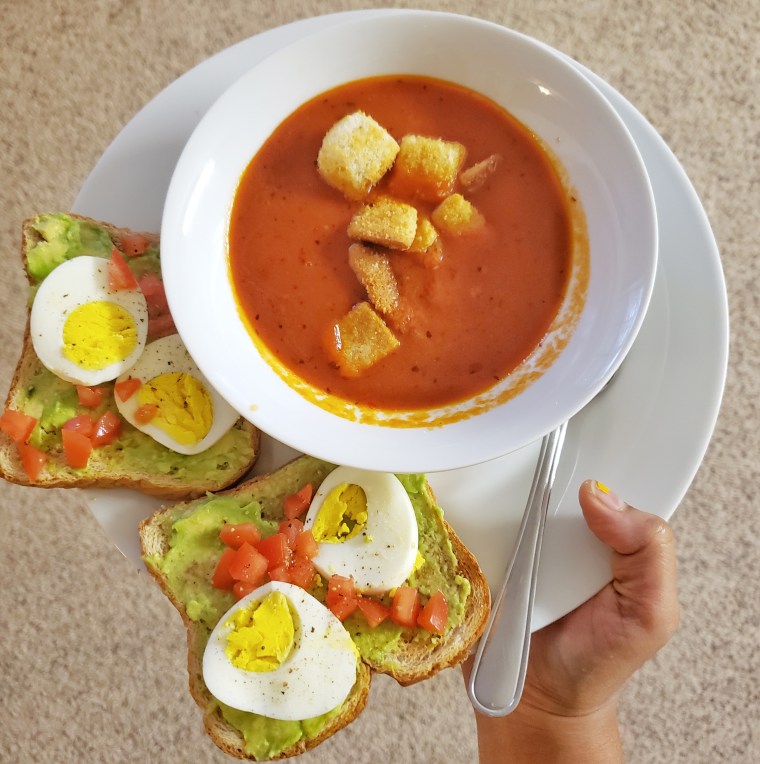Toast 2 slices of bread a d spread the mashed avocado, sprinkle some salt, pepper and red chilli flakes if you’d like , squeeze some lemon juice and you’re good to go. If you love egg like I do, you can slice 1 hardboiled egg on the top of the mashed avacado. I added some chopped tomatoes too just for a lovely dash of color. 😍 Now plate this like I did and you’re good to go.